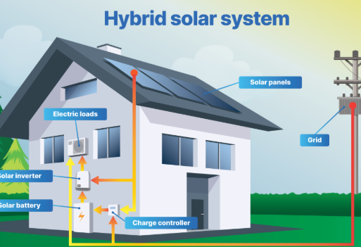 Hybrid solar systems combines the best from grid-tied and off-grid solar systems. These systems can either be described as off-grid solar with utility backup power.or grid-tied solar.